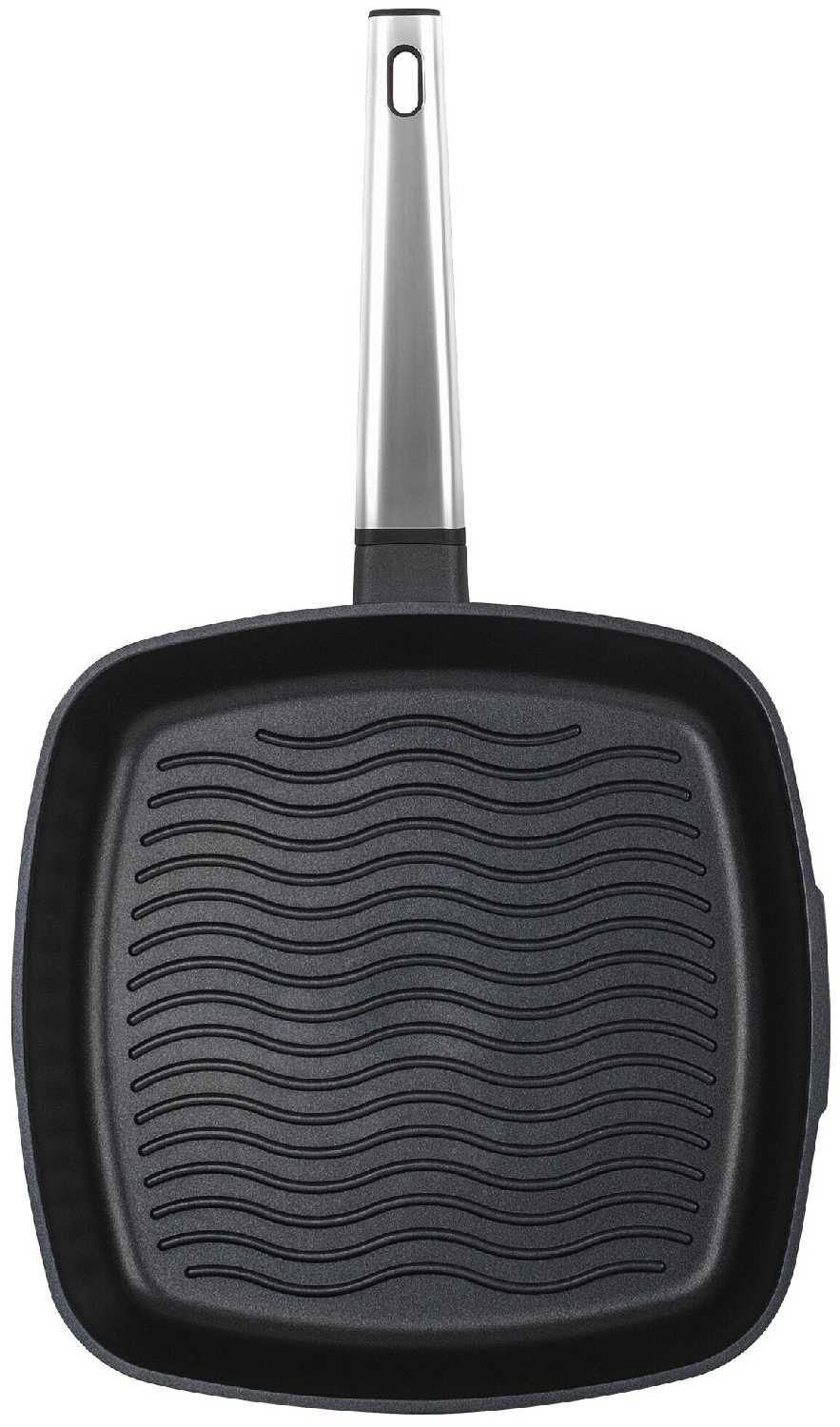 - + Она большая и вместительная. У нее рифленная поверхность, легко моется. Покрытие антипригарное. Ручка с силиконовой вставкой, а сама стальная. На сковороде удобно жарить