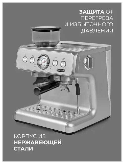 - Таймер помола позволяет точно дозировать кофе (14–19 г для двойного рожка).