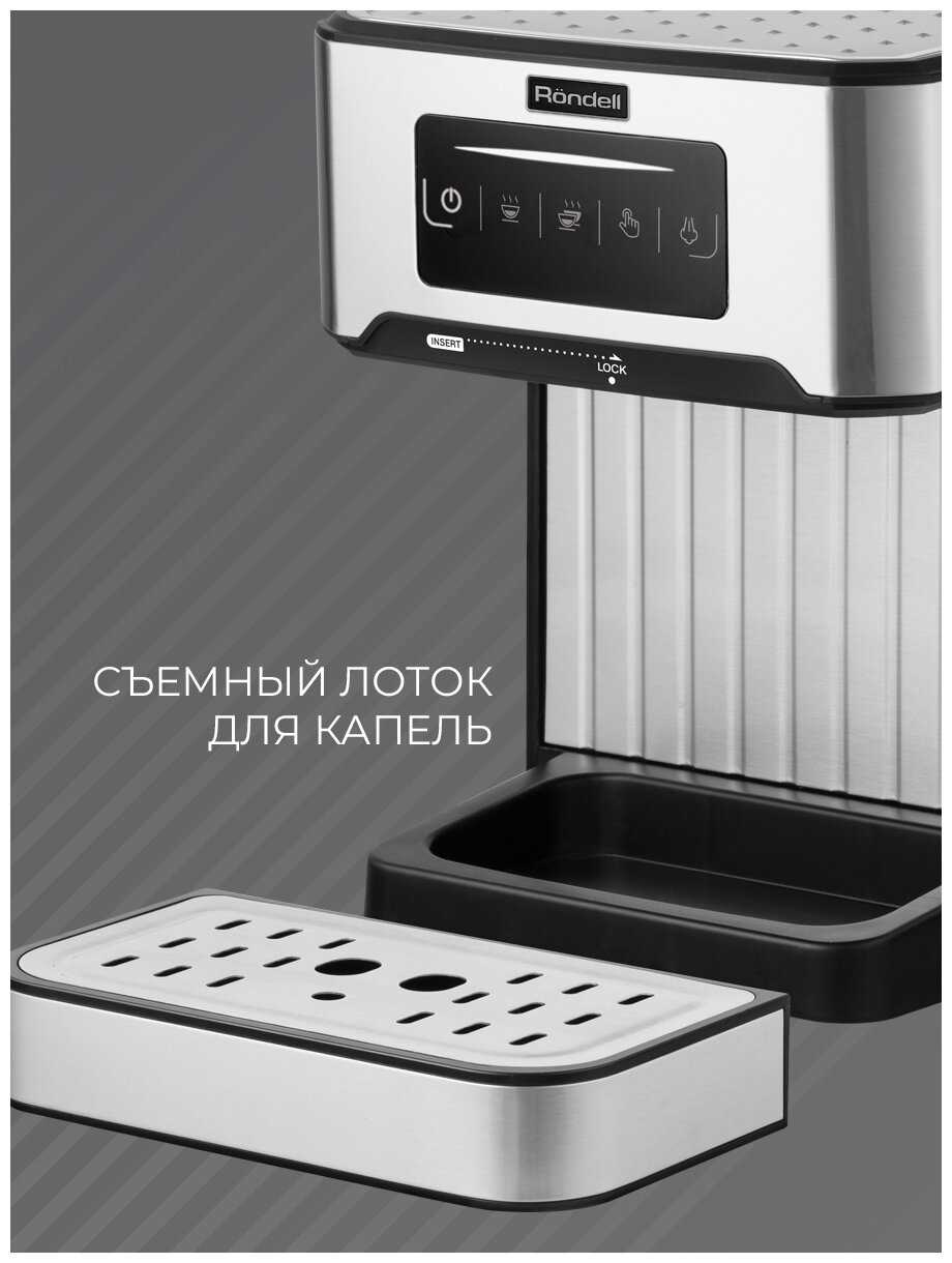 - Поддон для чашек съёмный, а противокапельная система минимизирует загрязнения.