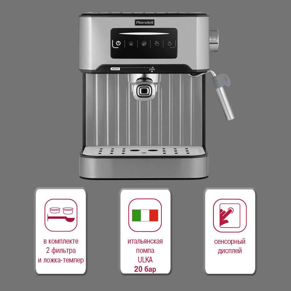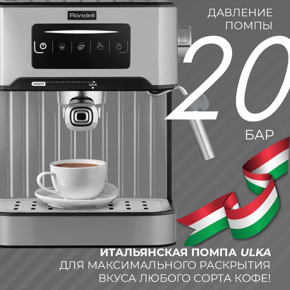 - Мощная помпа с давлением 15-20 бар для насыщенного вкуса: