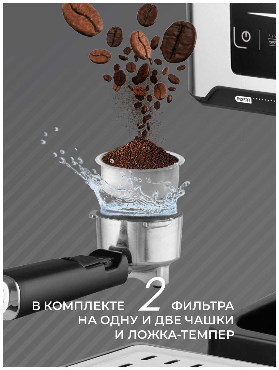 - Высокое давление позволяет использовать кофе разной степени помола, хотя для оптимального результата рекомендуется средний или крупный помол.