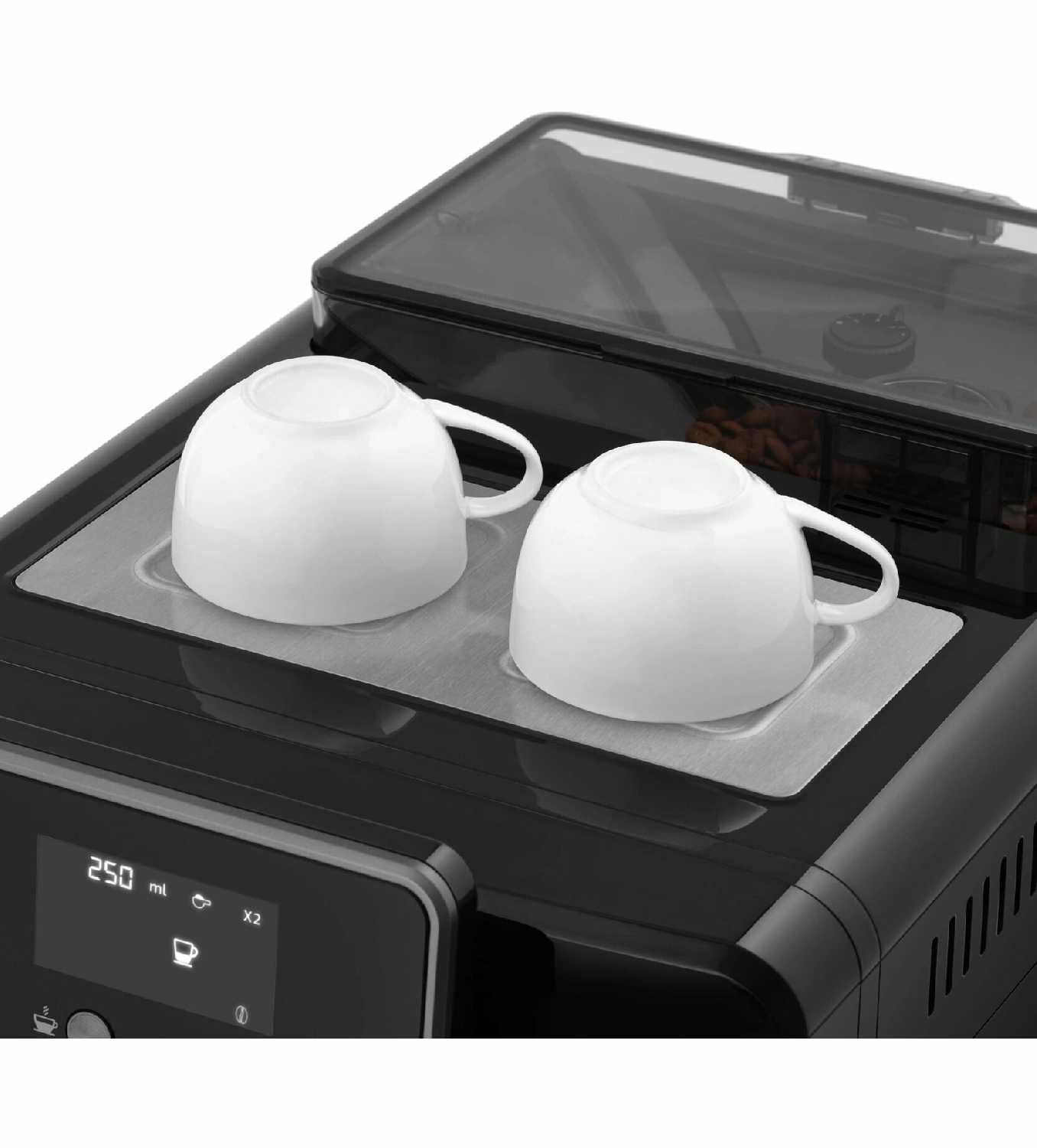 - Подогрев чашек сверху сохраняет тепло напитка, полезно для эспрессо, греется только в режиме ожидания.