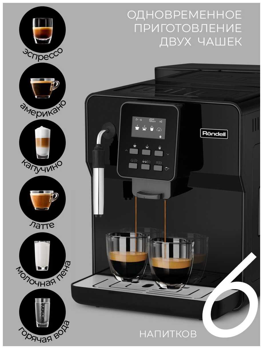 - Автоматическая промывка после каждого включения/выключения предотвращает накопление кофейных масел.