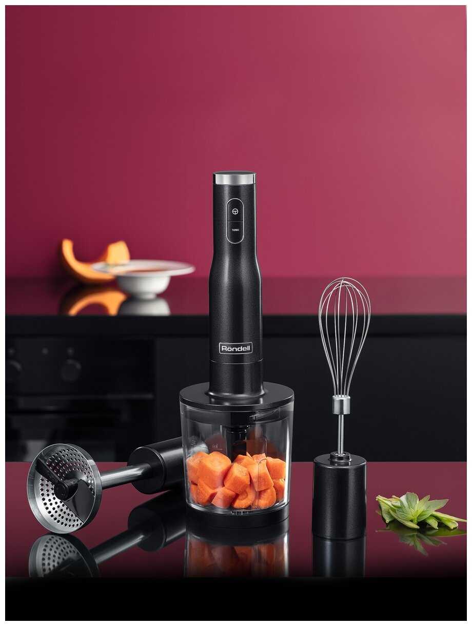 - Насадка из нержавеющей стали обеспечивает воздушную текстуру пюре без комков, что невозможно с обычными ножами.