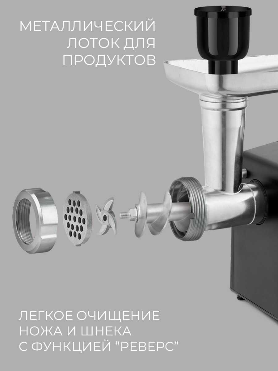 - Высокая мощность (1800 Вт) и эффективность переработки мяса: