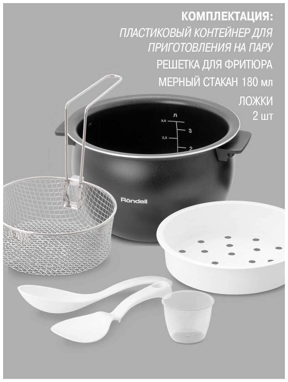 > Rondell это фирма, зарекомендовавшая себя отличной посудой. Чаща, достаточно часто, слабое место в мультиварках, но тут она добротная ибо это Rondell. - - > Внешний вид мультиварка чёрная, глянцевая, хорошо видны следы пальцев рук.