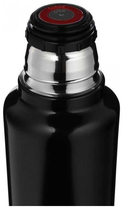- Кнопочный механизм открывания клапана позволяет наливать напиток одной рукой без полного откручивания крышки.