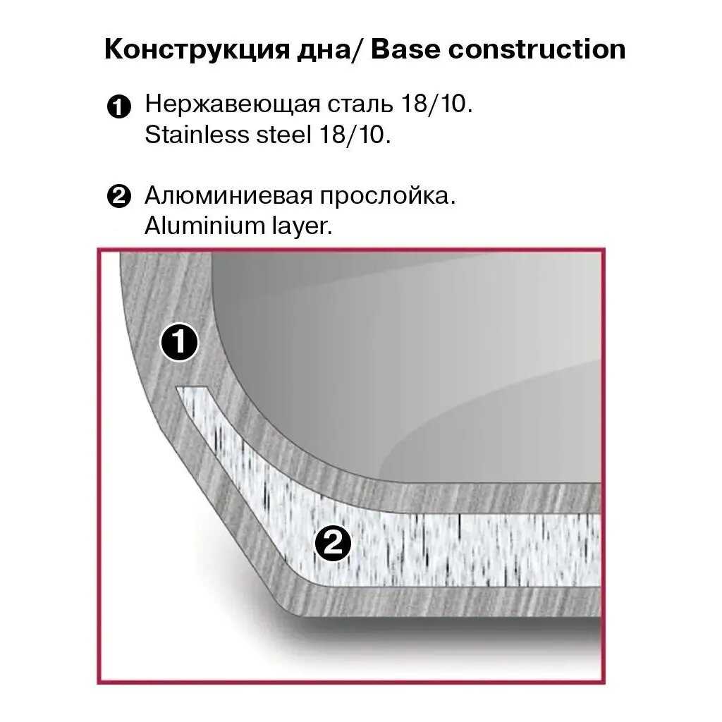 Кастрюля из нержавеющей стали, но у нее совремнная конструкция с многослойным дном, между литами нержавейки алюминий, что позволяет теплу быстро распространяться по поверхности и удерживает его даже после отключения плиты. По уходу кастрюля не проблемная, для мытья подходят обычные средства. Крышка стеклянная с металлическим ободом, хорошо прилегает и не выпускает тепло наружу.