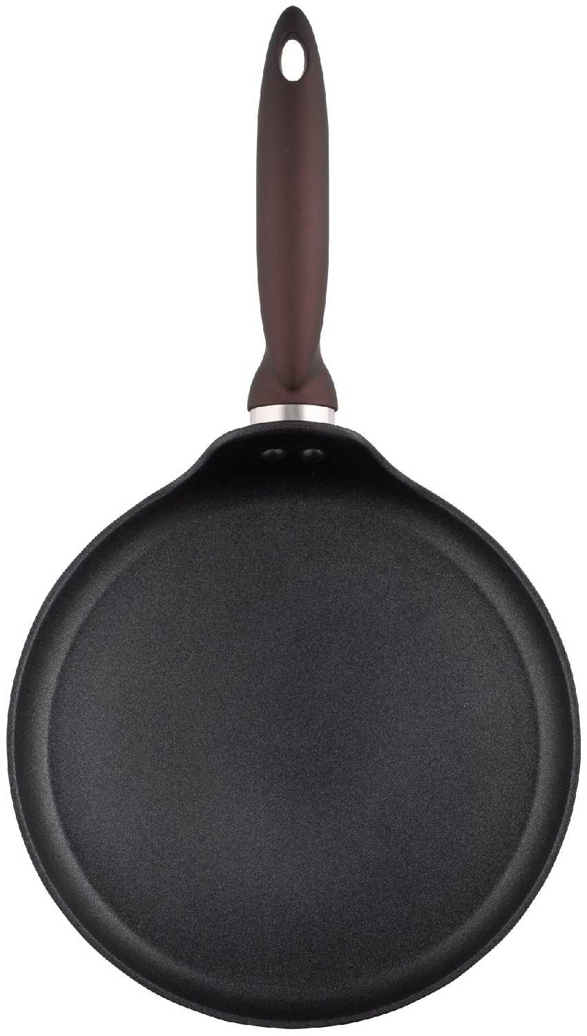 - + Качественная сковорода для блинов. Солидная фирма с историей, удобный размер, эргономичная ручка.