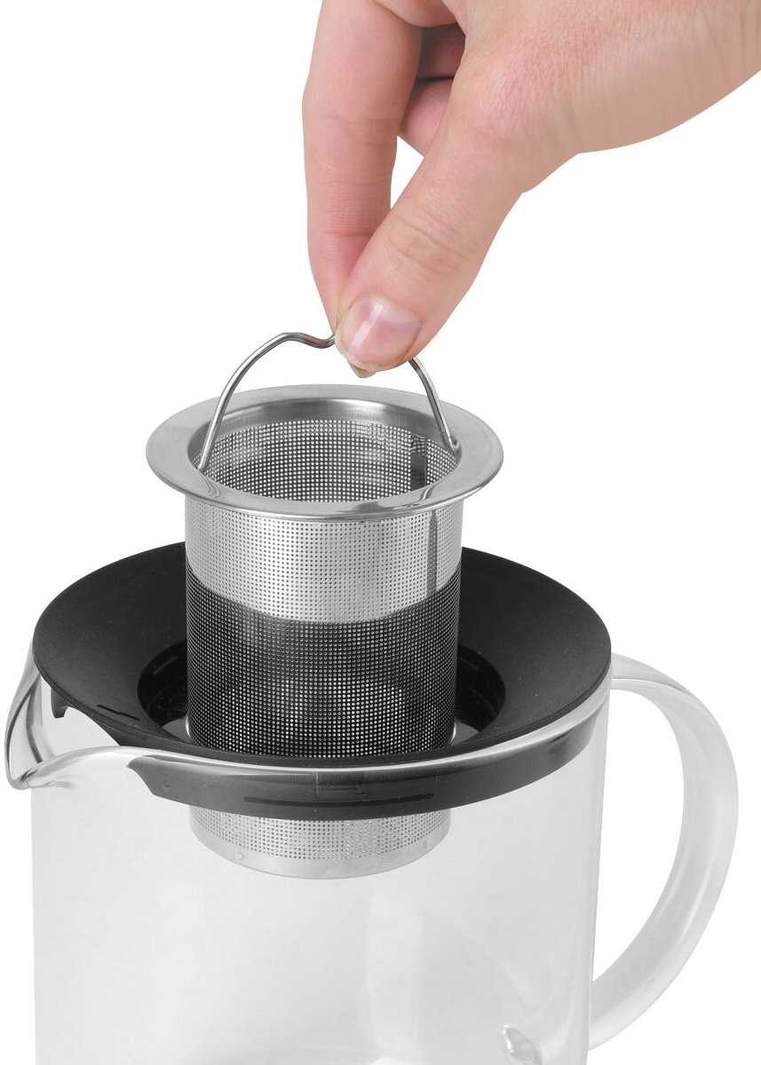 Очень удобно мыть, сеточка не пропускает мелкие частички чая. Понравилось что чайник полностью прозрачный и сетка именно металл, а не пластик. Оптимальный на мой взгляд объем.