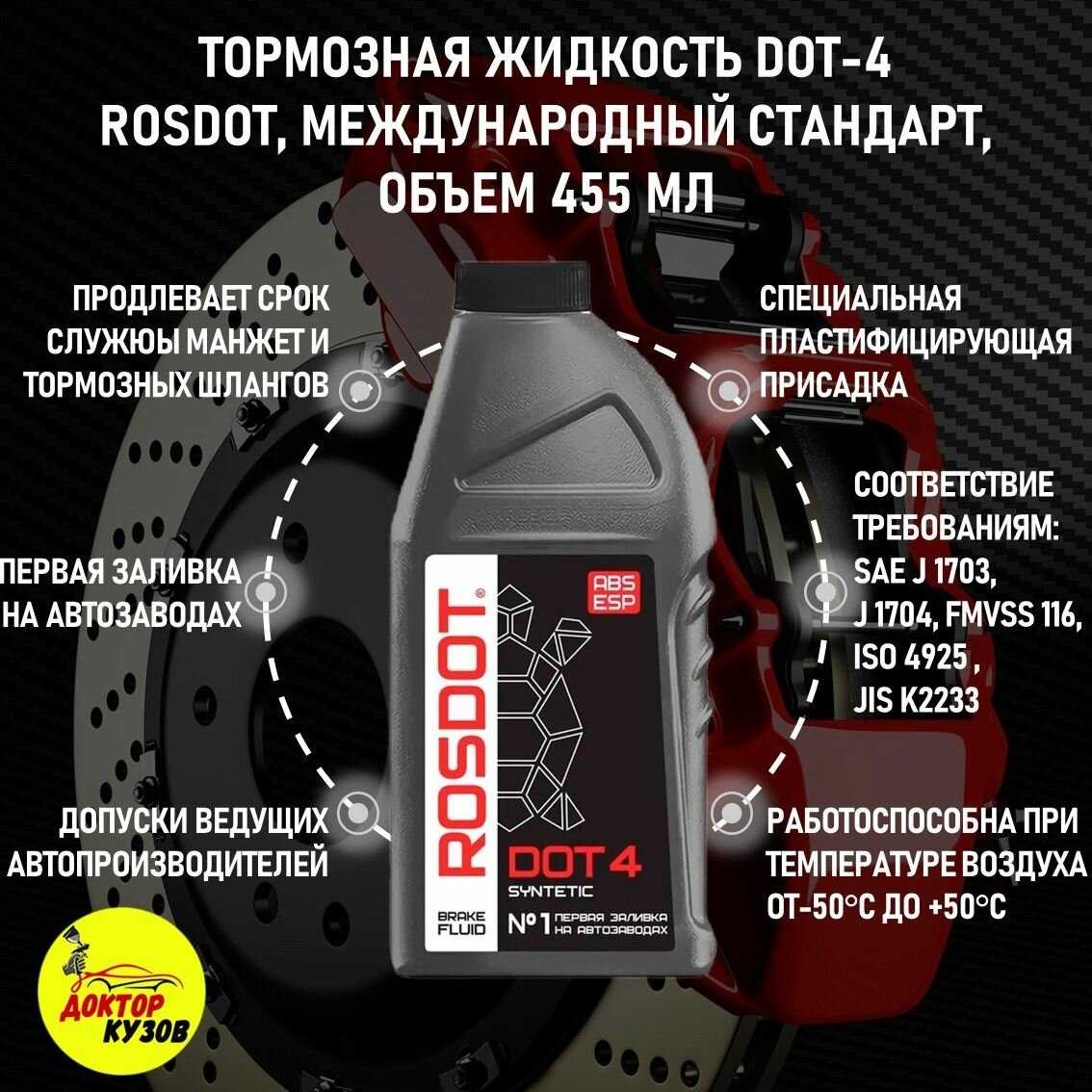 По характеристикам, Росдот 4 это современная тормозная жидкость, как минимум не уступающая импортным аналогам. Например такой параметра как температура кипения аж 257 градусов, она выстоит даже в самых тяжелых условиях. В гражданской эксплуатации, до таких температур доходит очень редко, а может и никогда не доходит. Чтобы до такой температуры разогреть тормоза, нужно разогнаться до 180 и одновременно давить на тормоз, чтобы тормозной диск светится начал, тогда может и ТЖ разогреется до 257 градусов. В обычной езде такого не будет, 257 градусов это очень большой запас прочности. Я проехал Росдоте уже много сотен тысяч километров, никогда проблем не было, тормоза работают безотказно, детали тормозов без коррозии и прочих траблов.