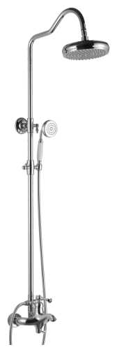 | Комплектация : | верхний душ, держатель лейки, душевая штанга, излив для набора воды, лейка, смеситель, шланг, эксцентрик |