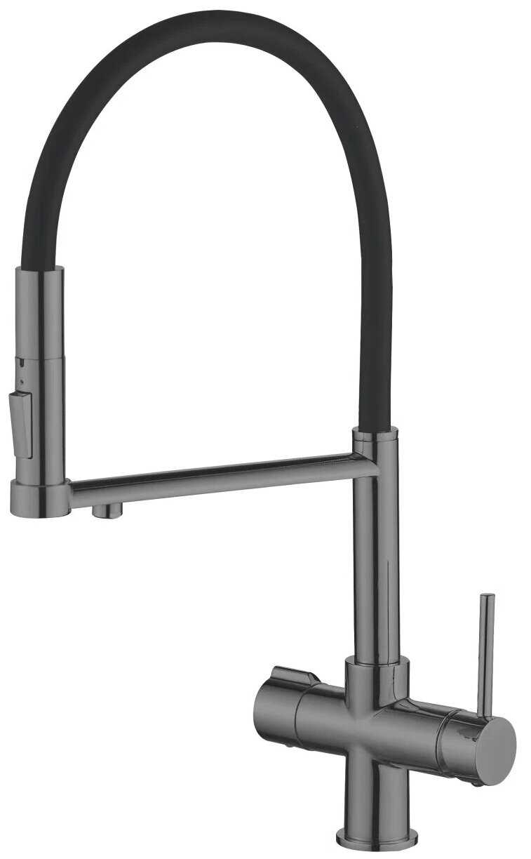 Многофункциональный. Клавиша душа фиксируется под давлением воды. Удобный, мягкий шланг. А самое удобное - это кран для питьевой воды. У меня под раковиной стоит фильтр, и не надо дополнительных кранов ставить на мойку.