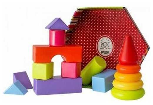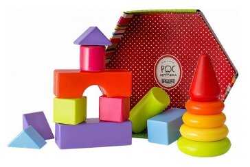 - + Приятные цвета, небольшой, но многофункциональный наборчик - и кубики разной формы и пирамидка есть. Мягко на них падать))