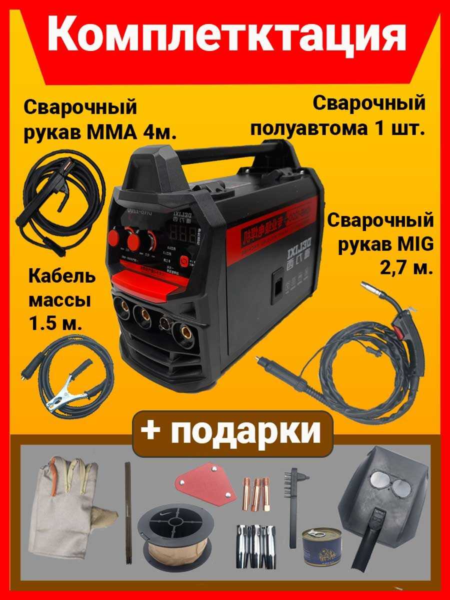 Комплектация : | Сварочный полуавтомат, Кабель массы, Сварочный рукав, Проволока для сварки |