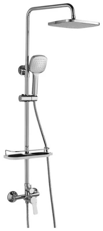 | Комплектация : | верхний душ, держатель лейки, душевая штанга, лейка, набор эксцентриков, отражатель, полочка, прокладки, смеситель, шланг |