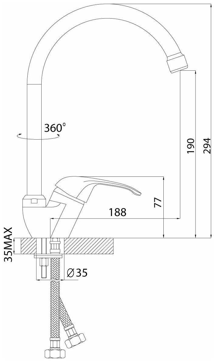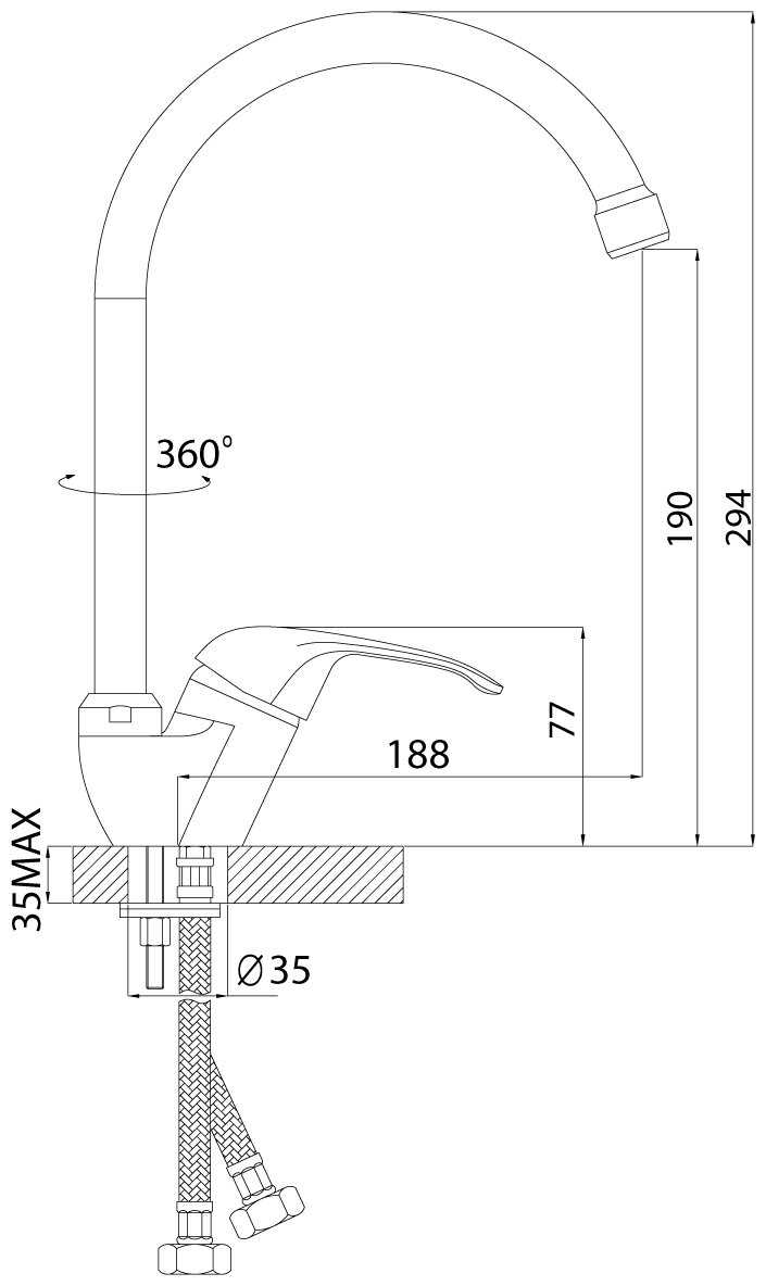 - + Недорогой,современный высокий гусак.С черной мойкой смотрится стильно.
