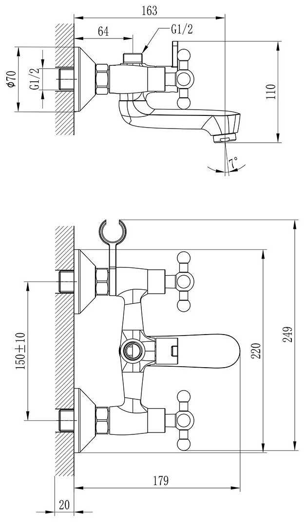 | Комплектация : | держатель лейки, лейка, набор эксцентриков, ручной душ, смеситель, шланг |