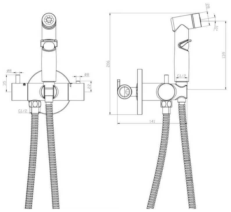 9 отзывов пользователей o Rossinka Silvermix Гигиенический душ Rossinka X X25-58 с термостатическим смесителем