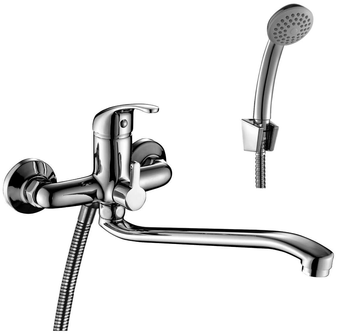 | @Комплектация : | корпус смесителя с керамическим картриджем - переключателем-дивертором с керамическими пластинами и металлической рукояткой - 1 шт., излив с аэратором - 1 шт., прокладка - 2 шт., декоративный отражатель - 2 шт., эксцентрический переходник - 2 шт., душевой шланг - 1 шт., душевая лейка - 1 шт., настенный держатель для душевой лейки - 1 шт. |