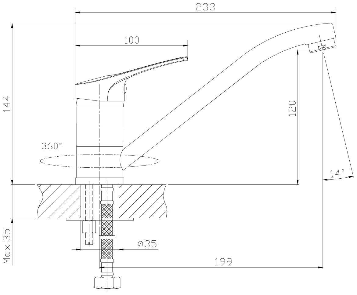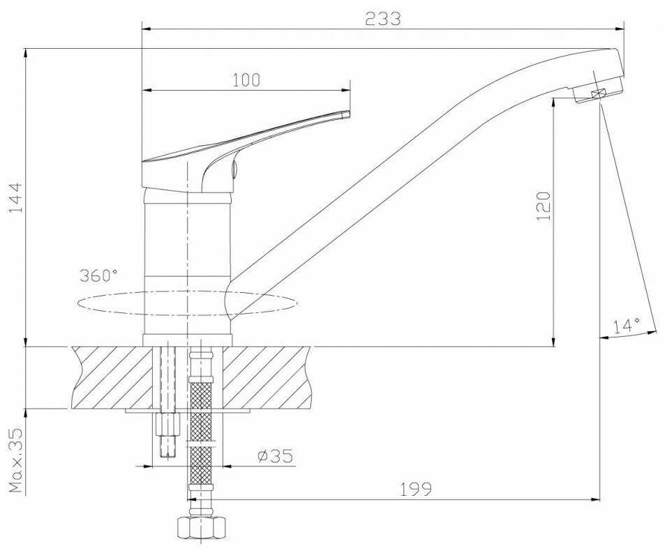 - + Внешний вид на отлично, довольно тяжелый, говорит что действительно есть металл. По длине и высоте подошёл идеально. Плавный ход ручки и поворотной части крана.