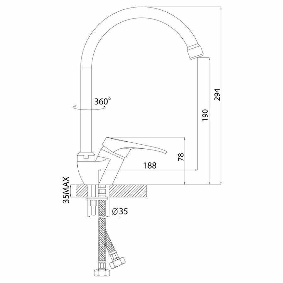 Конструкция поворотного излива удачная, ни где не подтекает - - Неудобно монтировать, резьбы подводки утоплены глубоко внутрь. Притягивается шпильками, а не гайкой.