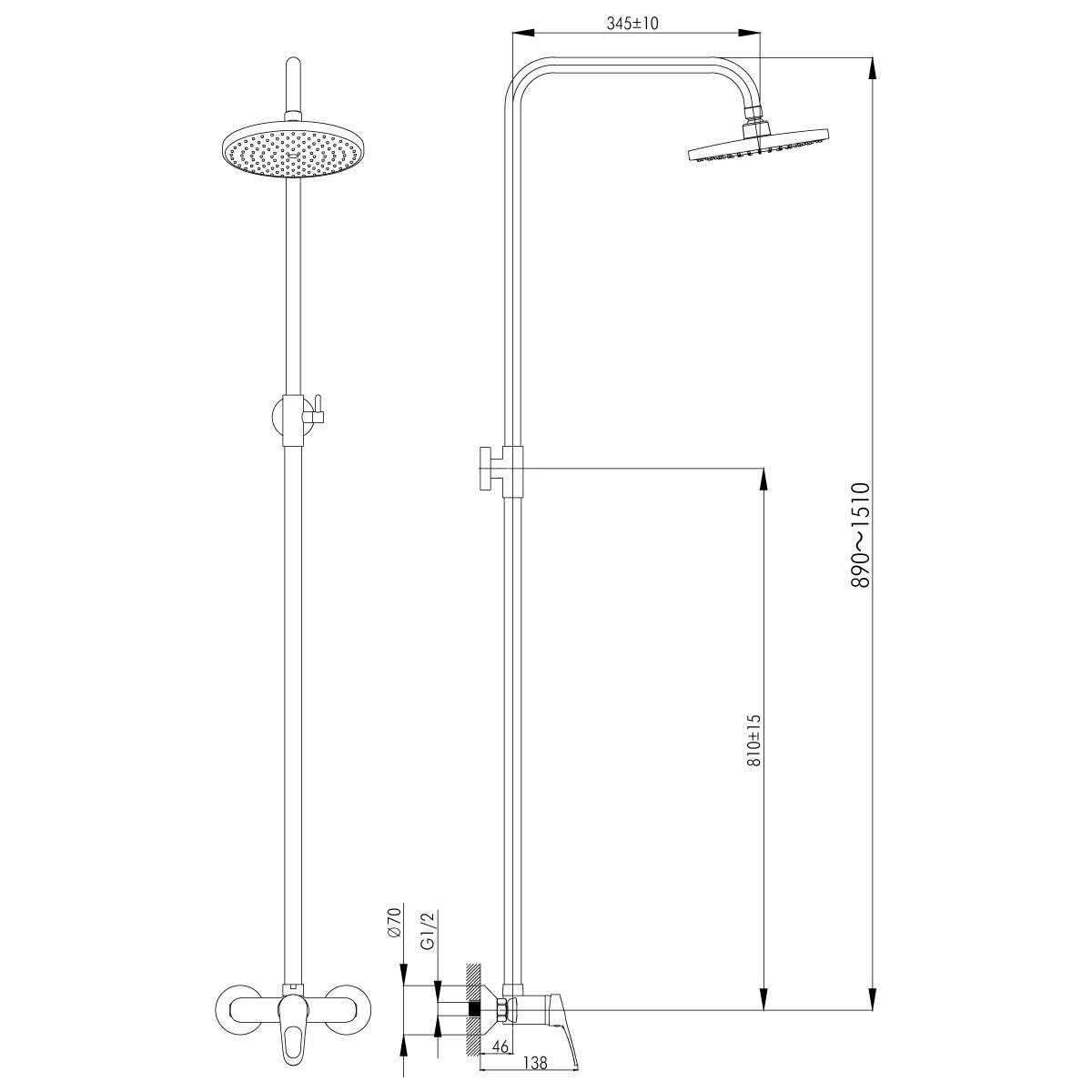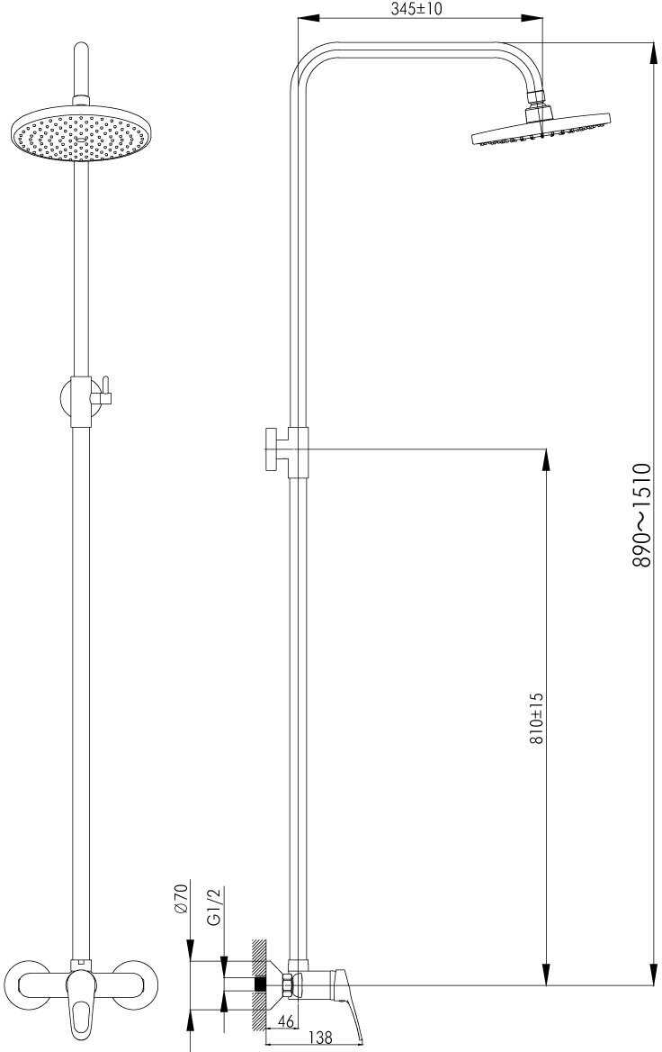 | Дополнительная информация : | высота стойки для душа: 1535 мм, диаметр верхнего душа: 200 мм |