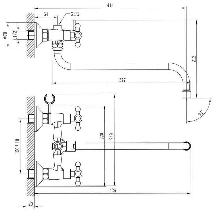 | Особенности : | S-образные эксцентрики, аэратор, держатель душевой лейки, поворотный излив |