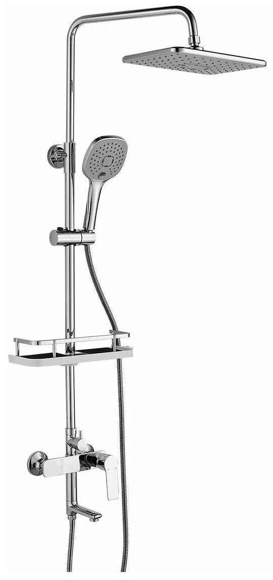 | Комплектация : | верхний душ, держатель лейки, душевая стойка, душевая штанга, излив для набора воды, кронштейн, лейка, полочка, ручной душ, смеситель, шланг, эксцентрик |
