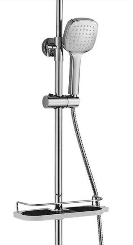 - - Имейте в виду, В комплектации очень некачественная, пластиковая БЕЛАЯ полочка, которая крепится на штангу душа. Даже пробовать не стали прикреплять, выглядит очень дешево и совсем не вписывается в общую картину душевой системы.