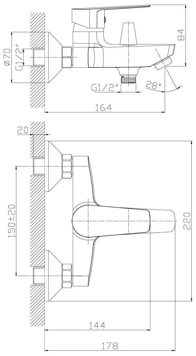 | Комплектация : | лейка, настенный держатель, смеситель, шланг, эксцентрик |