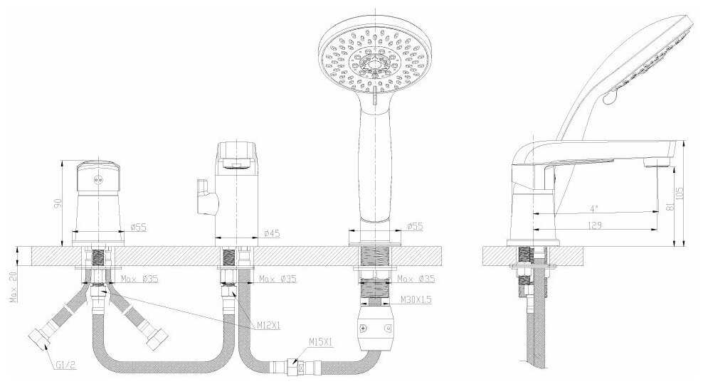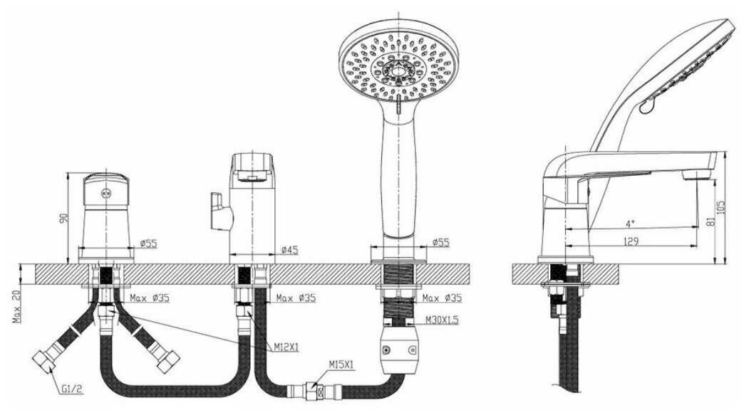 - - Наполнять ванну можно очень долго из данного излива с малым диметром. Вода уже начнёт стынуть... В процессе монтажа обязательно будут моменты с поиском доп.деталей/запчастей.