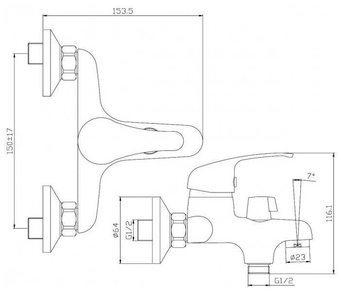 | Глубина изделия в сборе : | 153.5 мм |
