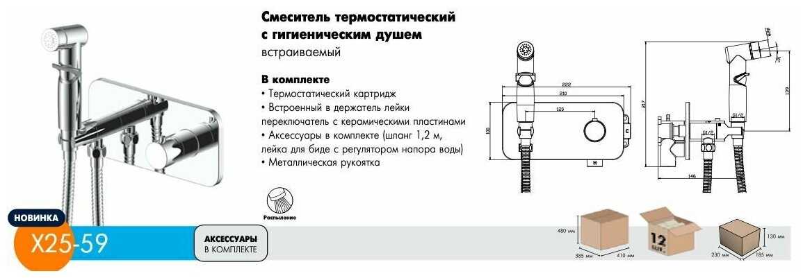 Характеристи Rossinka Silvermix X25-59 (термостатический с гигиеническим душем)