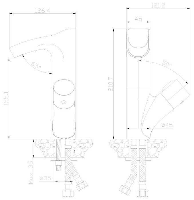 Регулировка не совсем привычная - напор и теплота воды совмещены, ход крана разделен на три секции, поэтому в начале нарастает напор холодной воды, если дальше крутить - подмешивается горячая, а если еще дальше - холодная закрывается и течет только горячая.