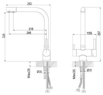 - + Удобный функциональный кран. Лучше, чем по-отдельности-Занимает меньше места.