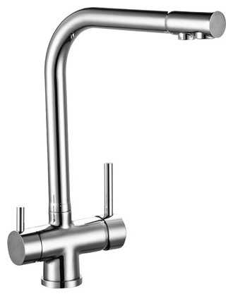 Модель смотрится массивно. В данный модели излив проточной воды и фильтрованный находится на кране рядом друг с другом. Есть модель где они объединены. На мой взгляд это более удобно, но дело привычки