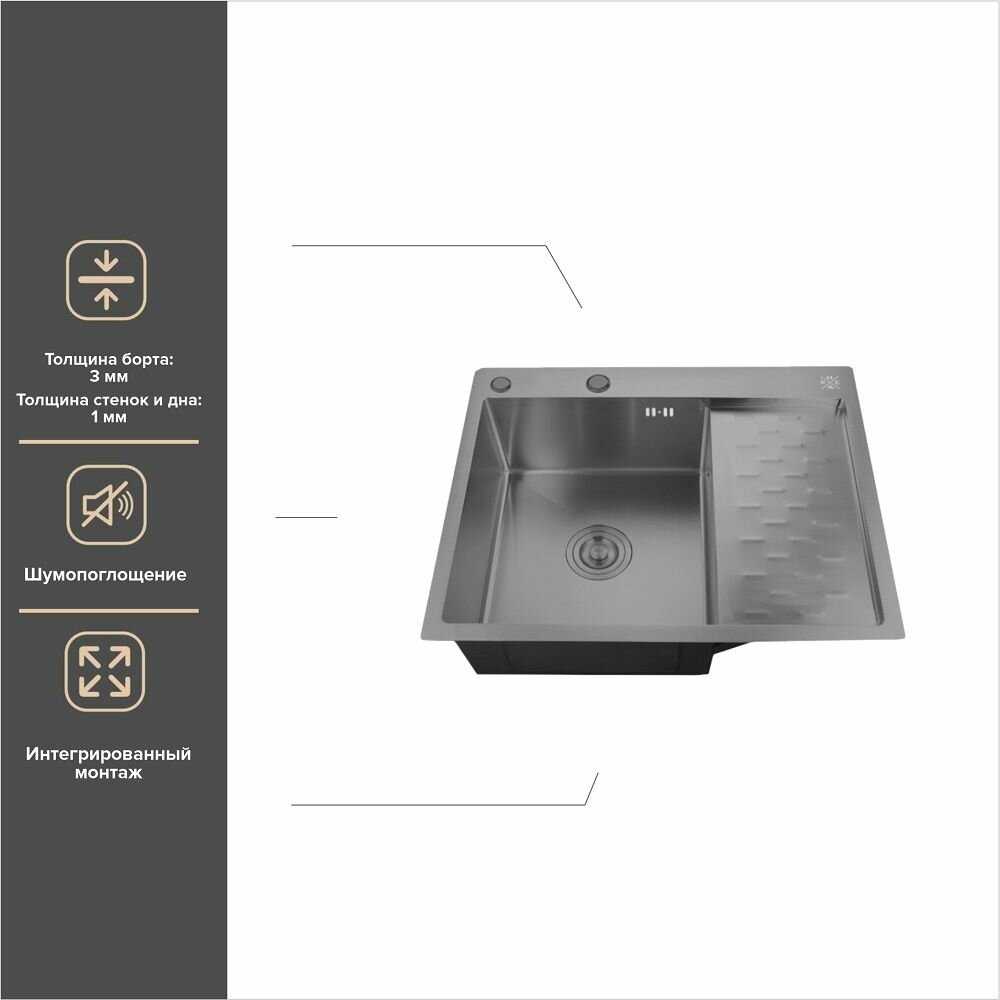 6 отзывов пользователей o Ростовская Мануфактура Сантехники Мойка для кухни с крылом (MRK-6350BL-L)