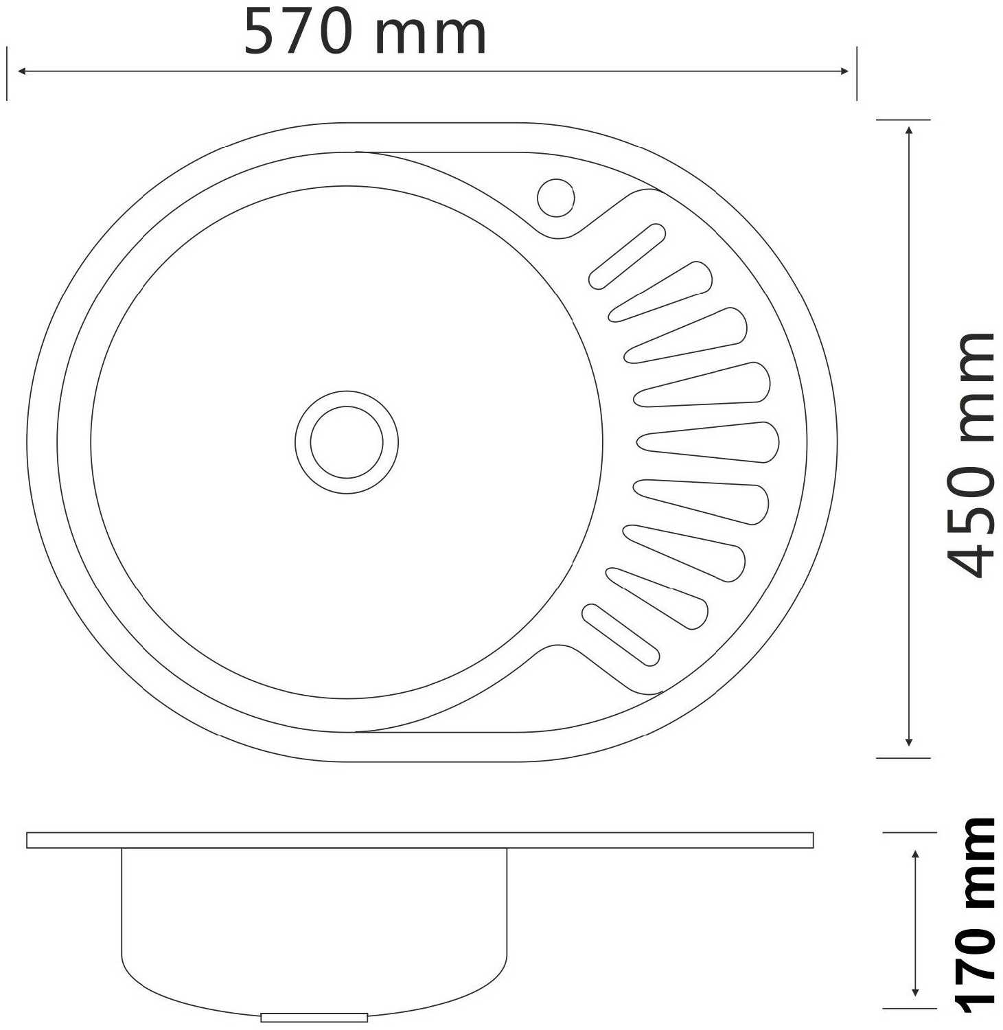 Характеристи Ростовская Мануфактура Сантехники Мойка кухонная РМС MG6-5745OVL, нержавеющая сталь 0,6 мм
