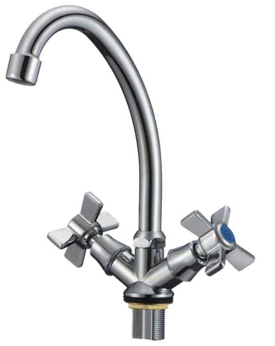 - + Прост в установке,хорошо льется вода,и по мне в кухне лучше крутящиеся краны,чем рычаги современные