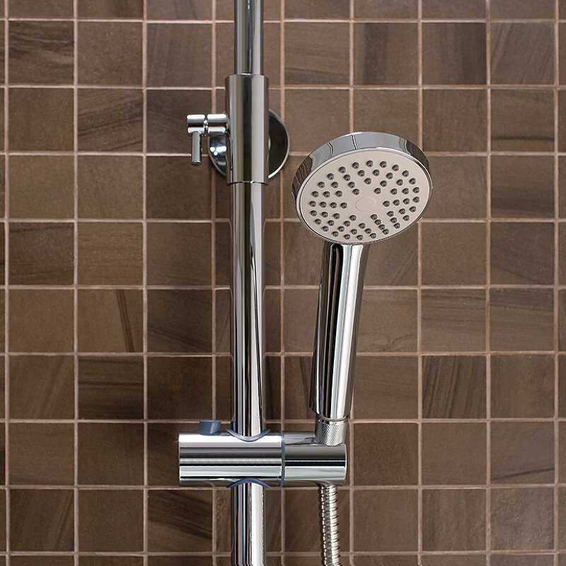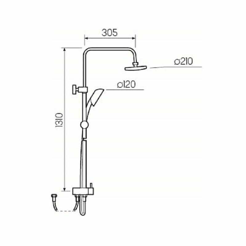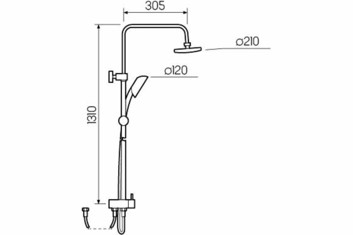 Дополнительная информация : | высота стойки для душа: 1310 мм, диаметр душевой лейки: 120 мм, диаметр верхнего душа: 210 мм |
