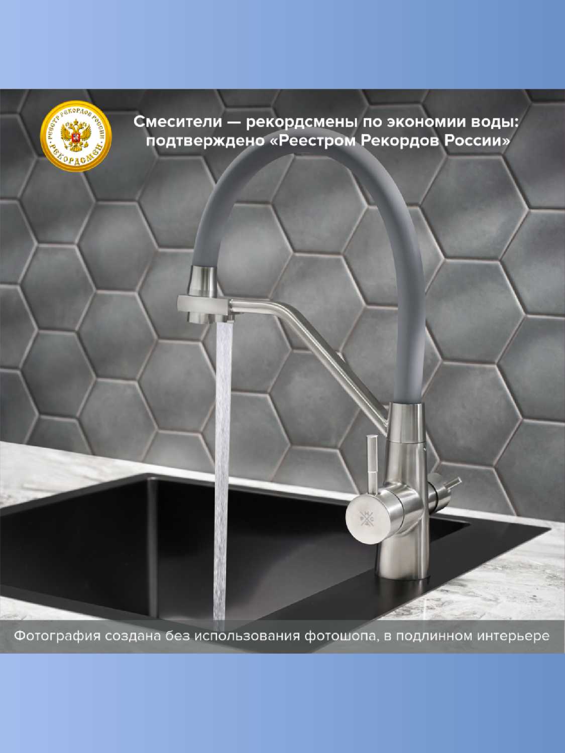 - - Дополняю отзыв спустя ещё несколько месяцев: появилась проблема - при открытии одного крана, вода течёт из двух отверстий. Это касается и крана с проточной водой, и крана с фильтрованной водой.