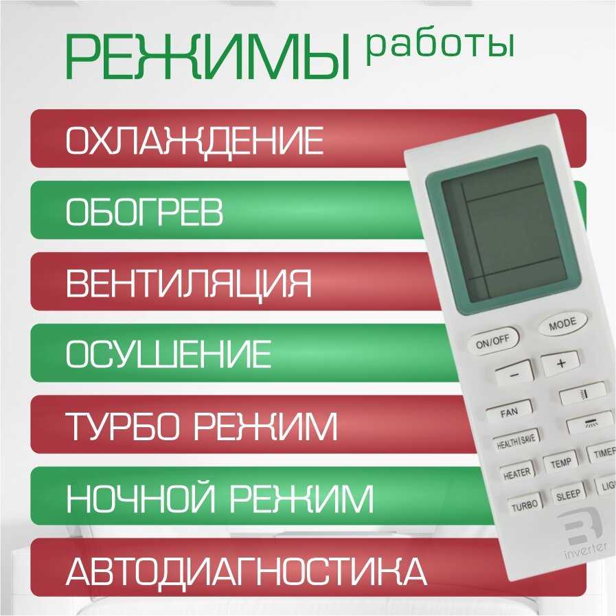 | Дополнительные режимы : | авто, бриз, вентиляция, ночной, осушение, турбо, экорежим |