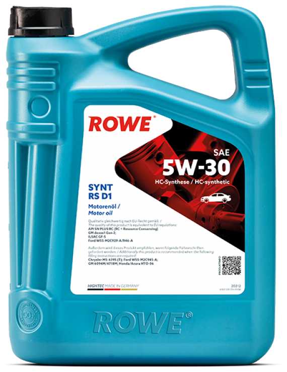 ROWE RS D1 5W30 предназначается для бензиновых ДВС, с турбонаддувом и без него.