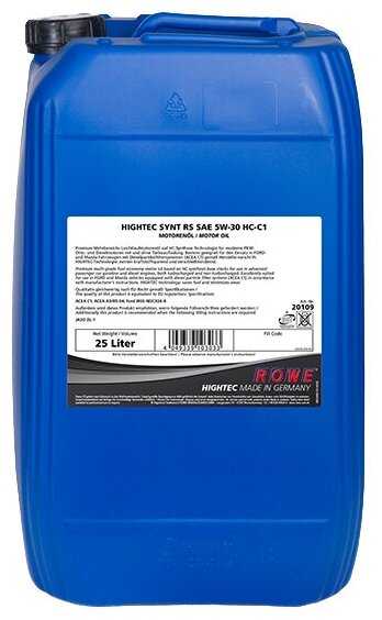 Отзывы о Синтетическое моторное масло ROWE Hightec Synt RS SAE 5W-30 HC-C1