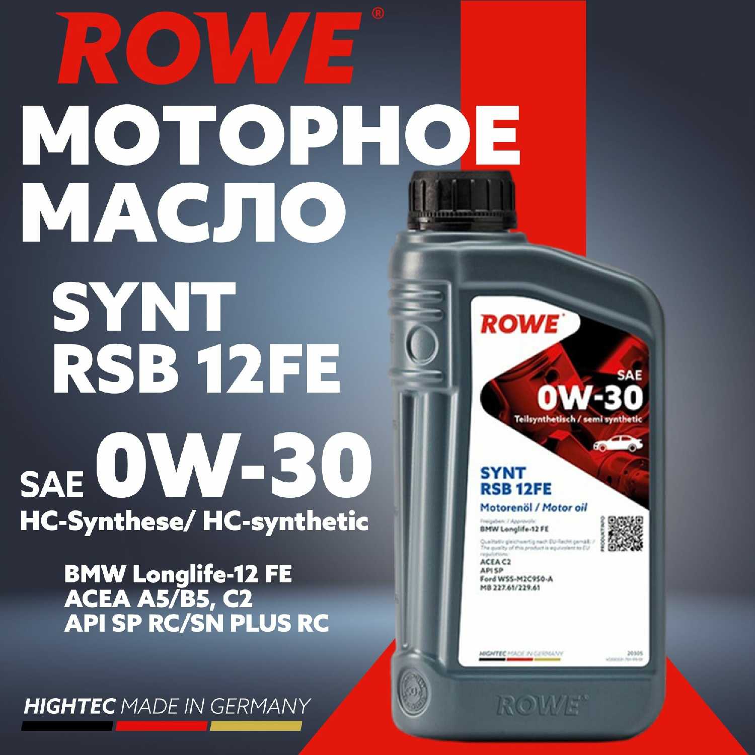 Отзывы о Моторное масло ROWE Hightec Synt RSB 12FE 0W-30 (20305-0010-99)