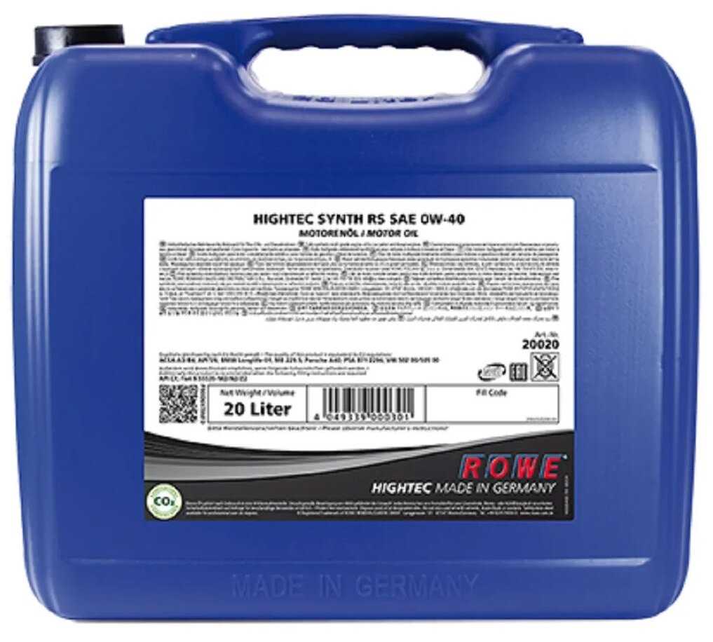 Отзывы о Синтетическое моторное масло ROWE Hightec Synth RS SAE 0W-40