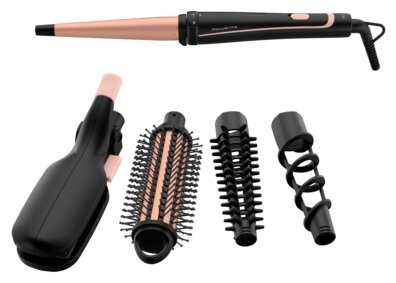 | Дополнительная информация : | насадки в комплекте: щипцы для завивки, насадка для локонов, насадка для выпрямления, круглая щетка, конические щипцы |