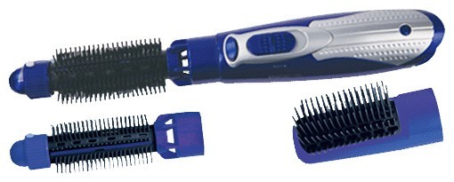 обычные, удобнее, чем держать отдельно расчески, отдельно фен. Три разных режима потока воздуха. Первый с невысокой температурой, второй, более мощный и третий режим с прохладным воздухом. Щётки легко снимаются, фен легкий. В комплекте сумка для фена.