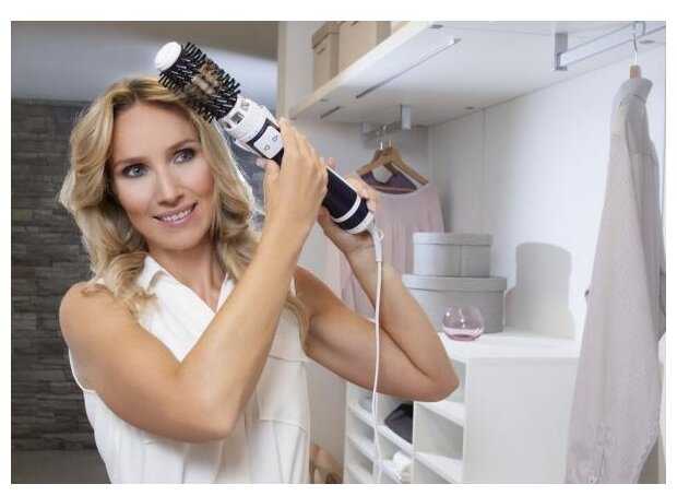 - Автоматическое вращение щеток в обе стороны ускоряет укладку, позволяя создавать волны или объем без ручного прокручивания.